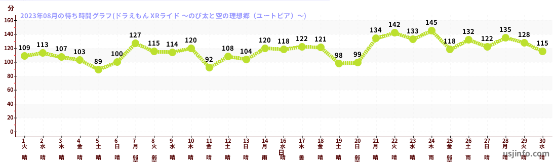 • ドラえもん XRライド ~のび太と空の理想郷(ユートピア)~$B$N(B2023年08月01日のの一日平均待ち時間