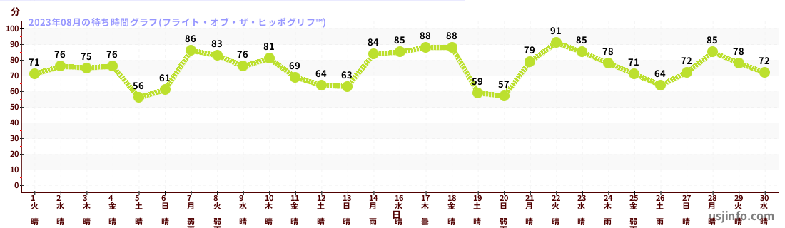 • フライト・オブ・ザ・ヒッポグリフ™$B$N(B2023年08月01日のの一日平均待ち時間