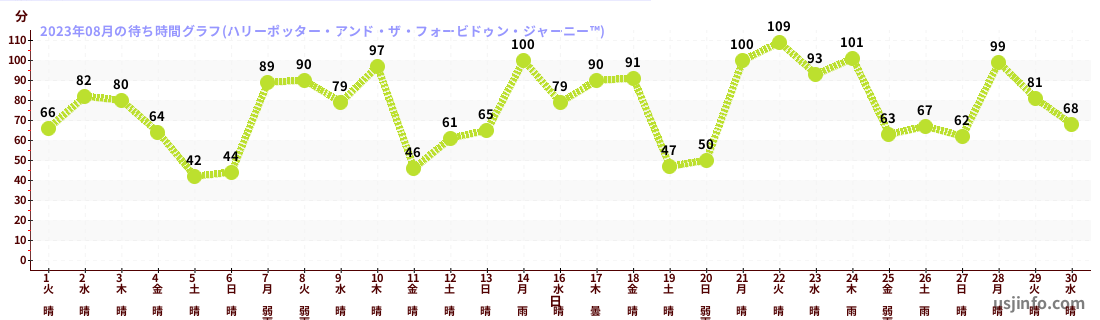 • ハリーポッター・アンド・ザ・フォービドゥン・ジャーニー™$B$N(B2023年08月01日のの一日平均待ち時間