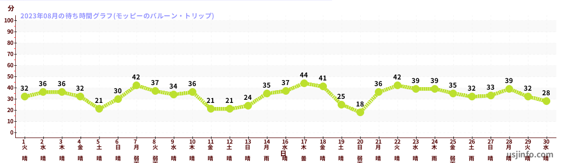 • モッピーのバルーン・トリップ$B$N(B2023年08月01日のの一日平均待ち時間