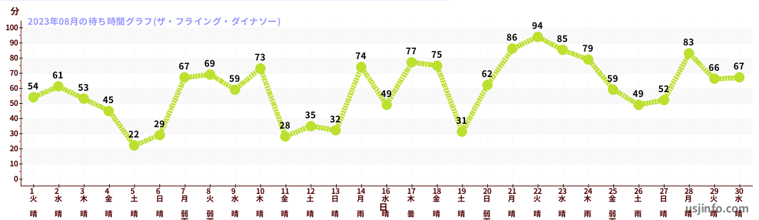 • ザ・フライング・ダイナソー$B$N(B2023年08月01日のの一日平均待ち時間