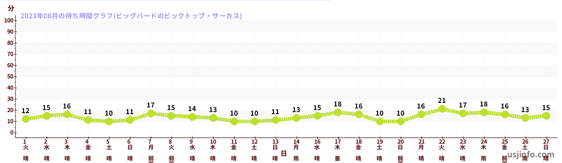 • ビッグバードのビックトップ・サーカス$B$N(B2023年08月01日のの一日平均待ち時間