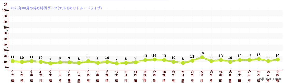 • エルモのリトル・ドライブ$B$N(B2023年08月01日のの一日平均待ち時間