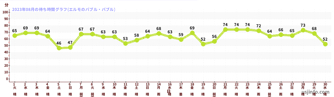 • エルモのバブル・バブル$B$N(B2023年08月01日のの一日平均待ち時間