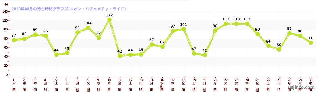 • ミニオン・ハチャメチャ・ライド$B$N(B2023年08月01日のの一日平均待ち時間