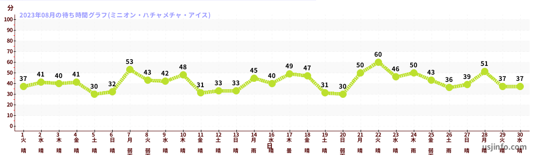 • ミニオン・ハチャメチャ・アイス$B$N(B2023年08月01日のの一日平均待ち時間