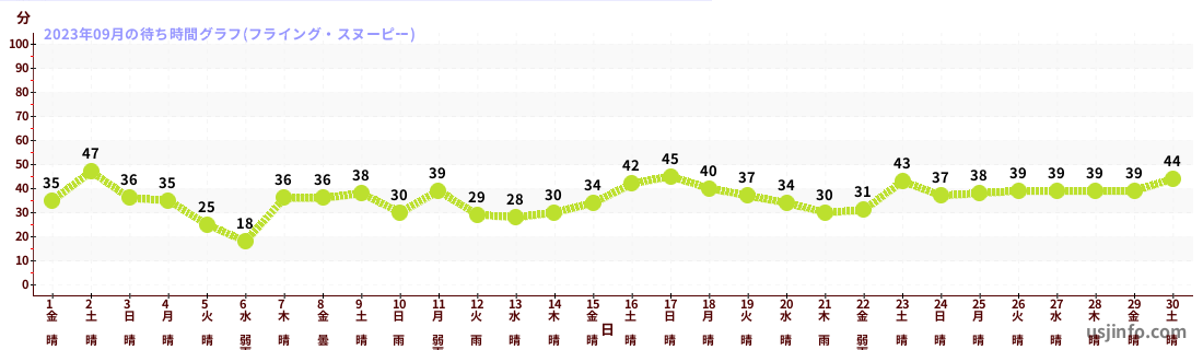 • フライング・スヌーピー$B$N(B2023年09月01日のの一日平均待ち時間