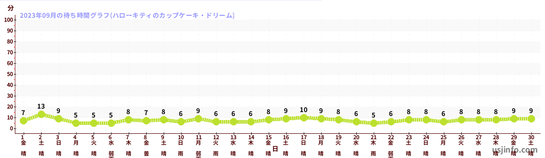 • ハローキティのカップケーキ・ドリーム$B$N(B2023年09月01日のの一日平均待ち時間