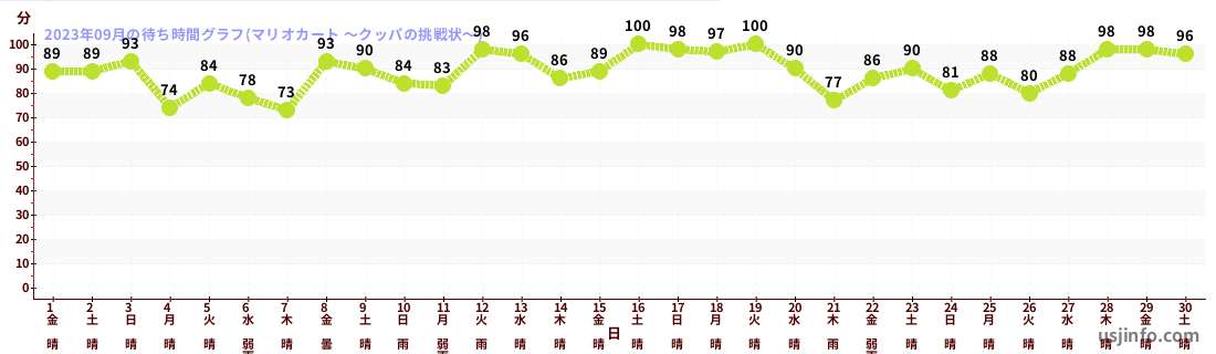 • マリオカート ~クッパの挑戦状~$B$N(B2023年09月01日のの一日平均待ち時間