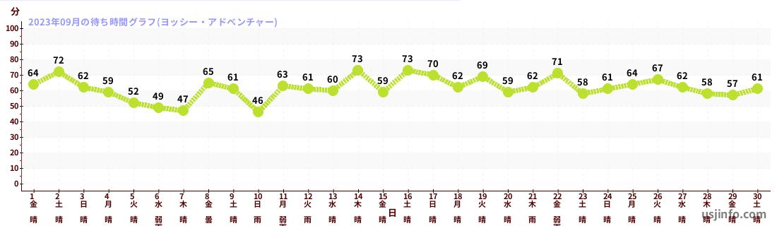 • ヨッシー・アドベンチャー$B$N(B2023年09月01日のの一日平均待ち時間