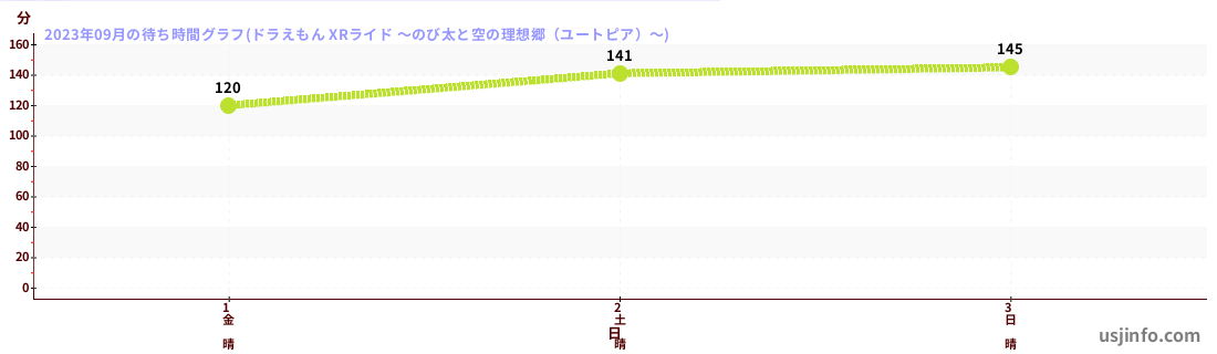 • ドラえもん XRライド ~のび太と空の理想郷(ユートピア)~$B$N(B2023年09月01日のの一日平均待ち時間