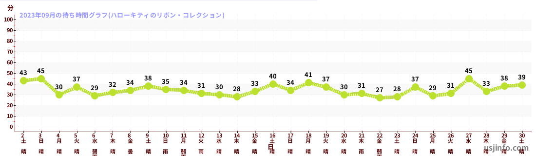 • ハローキティのリボン・コレクション$B$N(B2023年09月01日のの一日平均待ち時間