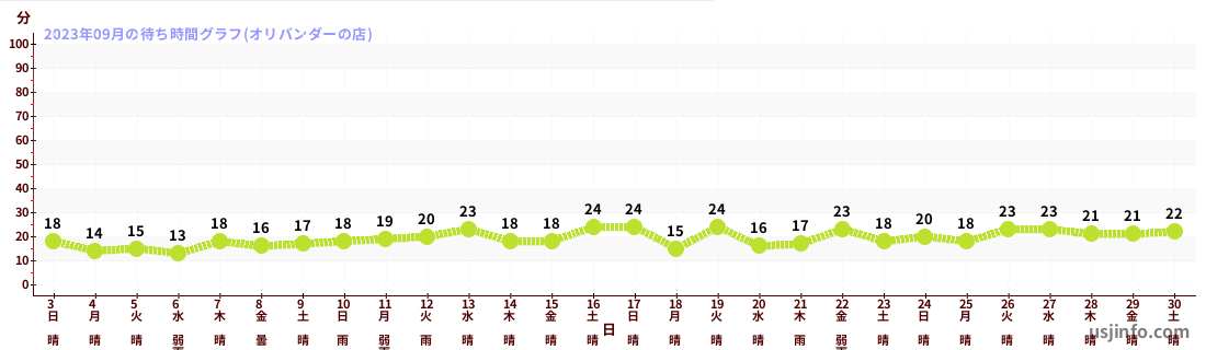 • オリバンダーの店$B$N(B2023年09月01日のの一日平均待ち時間