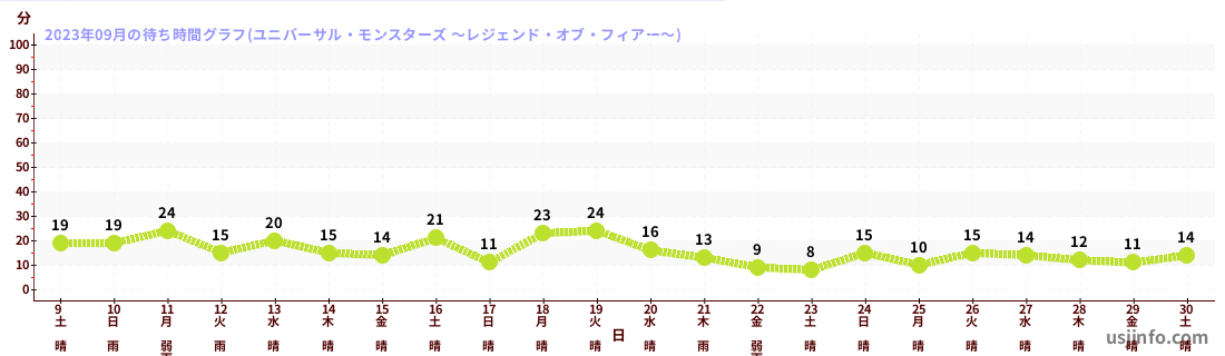 • ユニバーサル・モンスターズ ~レジェンド・オブ・フィアー~$B$N(B2023年09月01日のの一日平均待ち時間