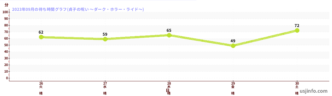 • 貞子の呪い ~ダーク・ホラー・ライド~$B$N(B2023年09月01日のの一日平均待ち時間