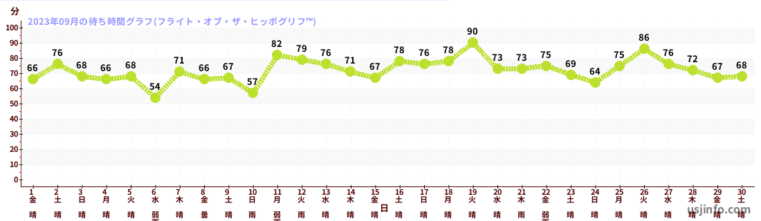• フライト・オブ・ザ・ヒッポグリフ™$B$N(B2023年09月01日のの一日平均待ち時間