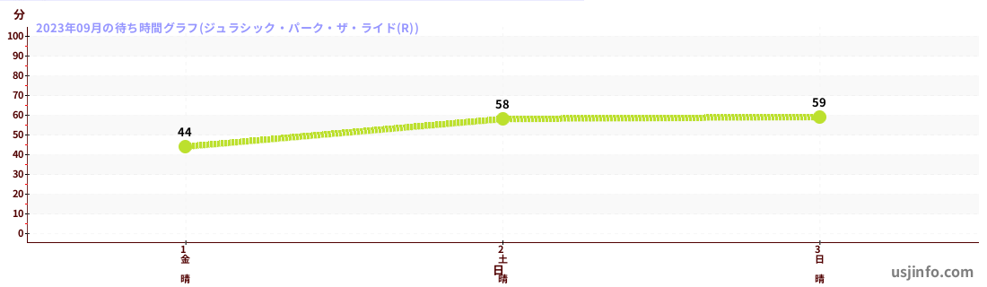 • ジュラシック・パーク・ザ・ライド(R)$B$N(B2023年09月01日のの一日平均待ち時間