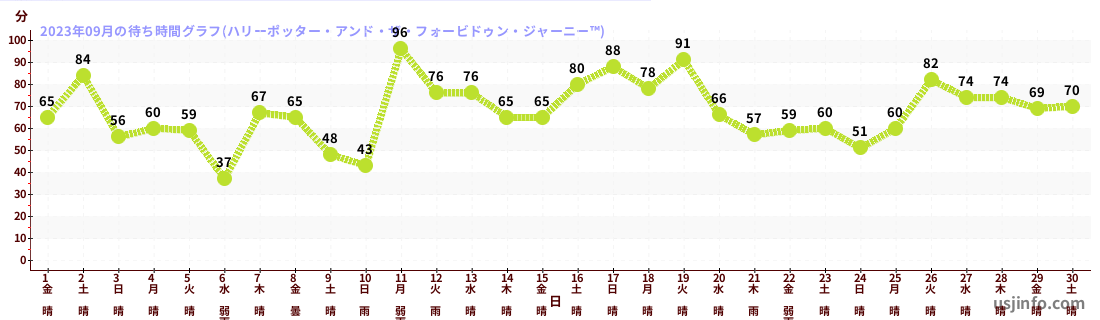 • ハリーポッター・アンド・ザ・フォービドゥン・ジャーニー™$B$N(B2023年09月01日のの一日平均待ち時間