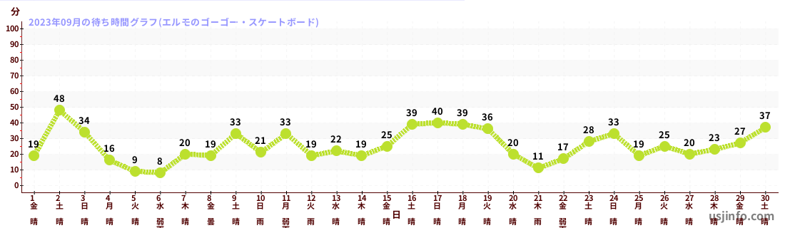 • エルモのゴーゴー・スケートボード$B$N(B2023年09月01日のの一日平均待ち時間