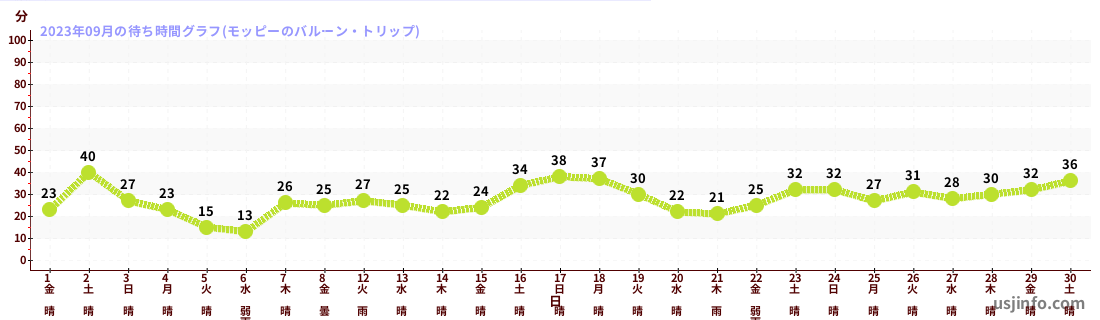 • モッピーのバルーン・トリップ$B$N(B2023年09月01日のの一日平均待ち時間