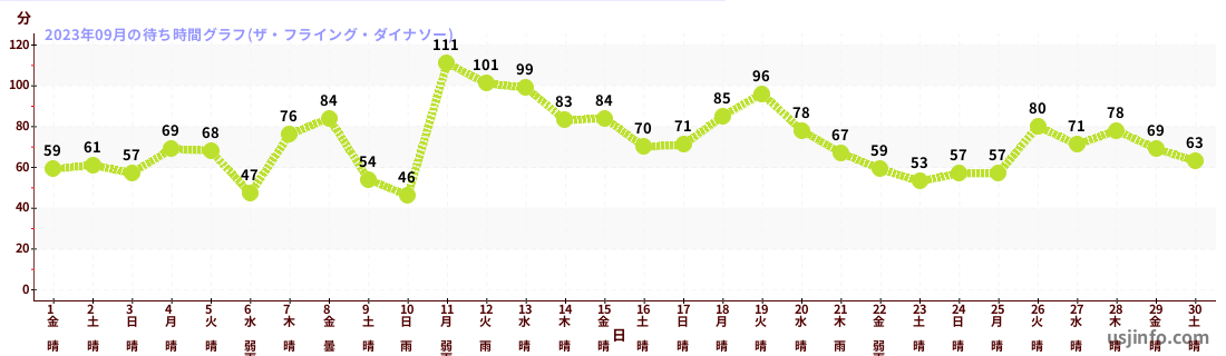 • ザ・フライング・ダイナソー$B$N(B2023年09月01日のの一日平均待ち時間
