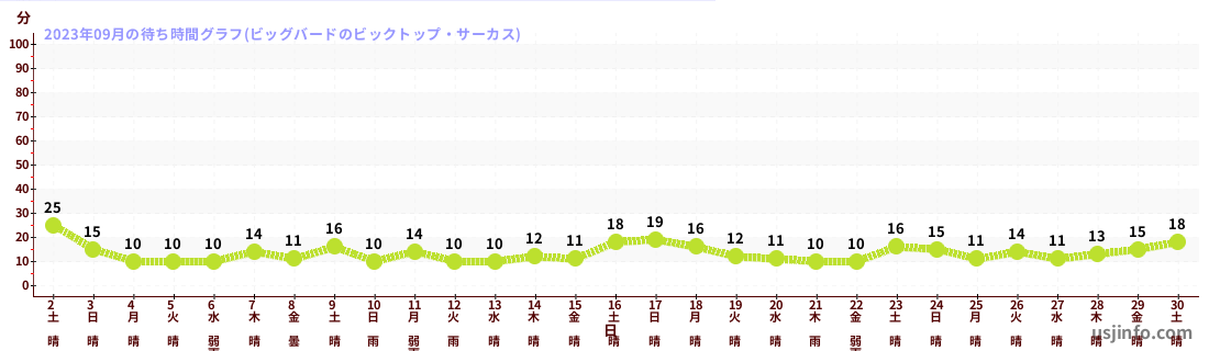 • ビッグバードのビックトップ・サーカス$B$N(B2023年09月01日のの一日平均待ち時間