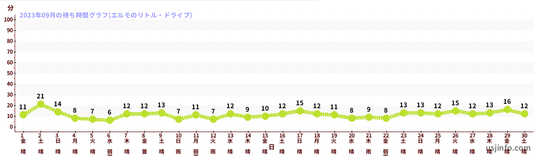 • エルモのリトル・ドライブ$B$N(B2023年09月01日のの一日平均待ち時間