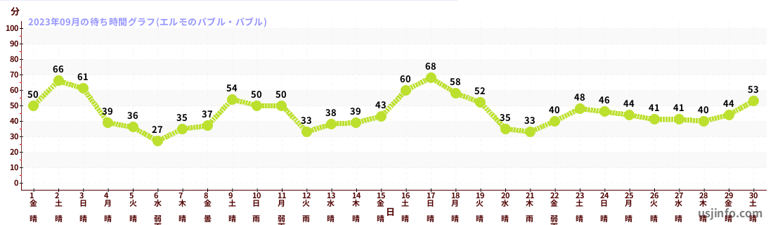 • エルモのバブル・バブル$B$N(B2023年09月01日のの一日平均待ち時間