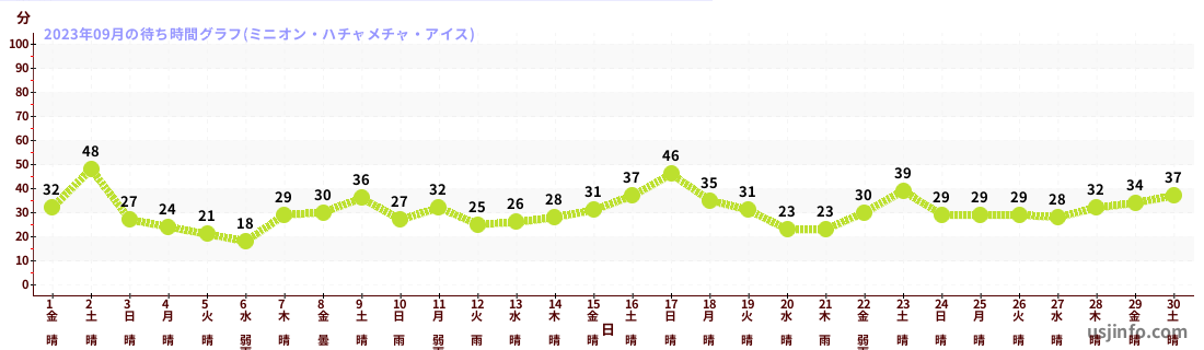 • ミニオン・ハチャメチャ・アイス$B$N(B2023年09月01日のの一日平均待ち時間
