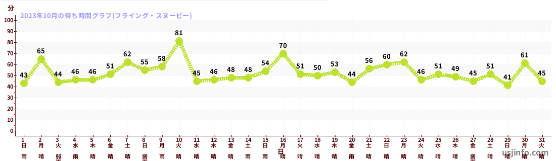 • フライング・スヌーピー$B$N(B2023年10月01日のの一日平均待ち時間