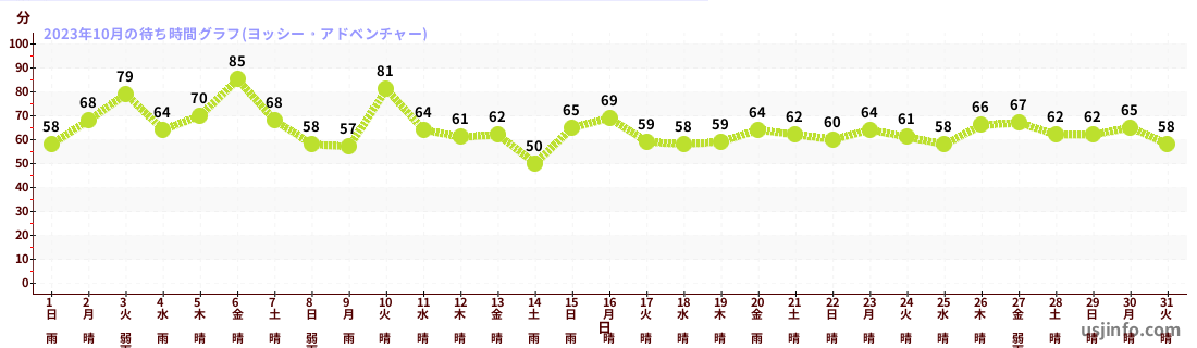 • ヨッシー・アドベンチャー$B$N(B2023年10月01日のの一日平均待ち時間