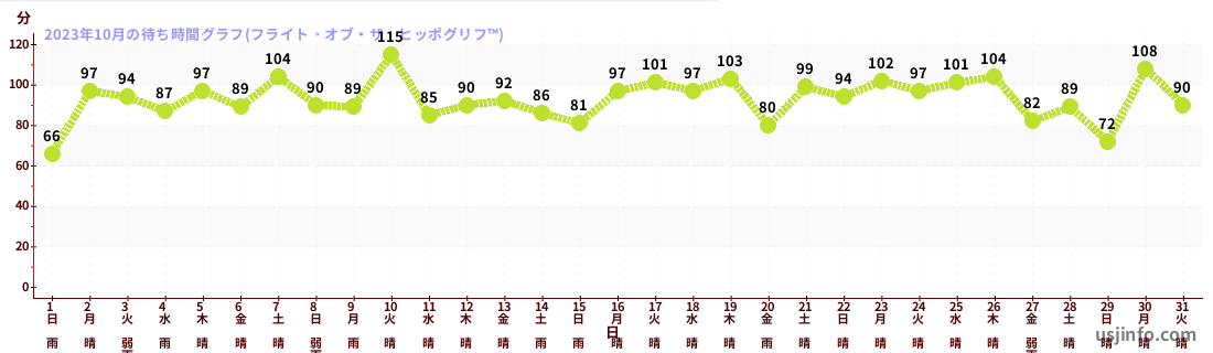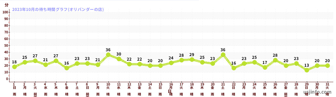 • オリバンダーの店$B$N(B2023年10月01日のの一日平均待ち時間