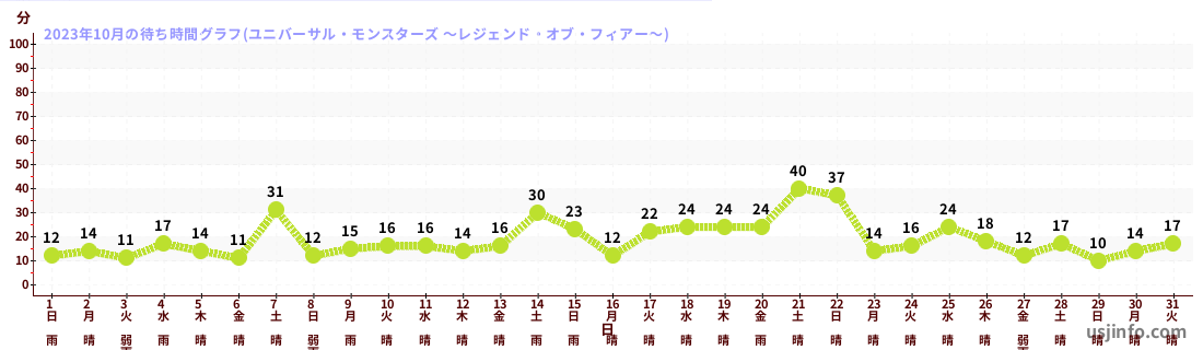 • ユニバーサル・モンスターズ ~レジェンド・オブ・フィアー~$B$N(B2023年10月01日のの一日平均待ち時間