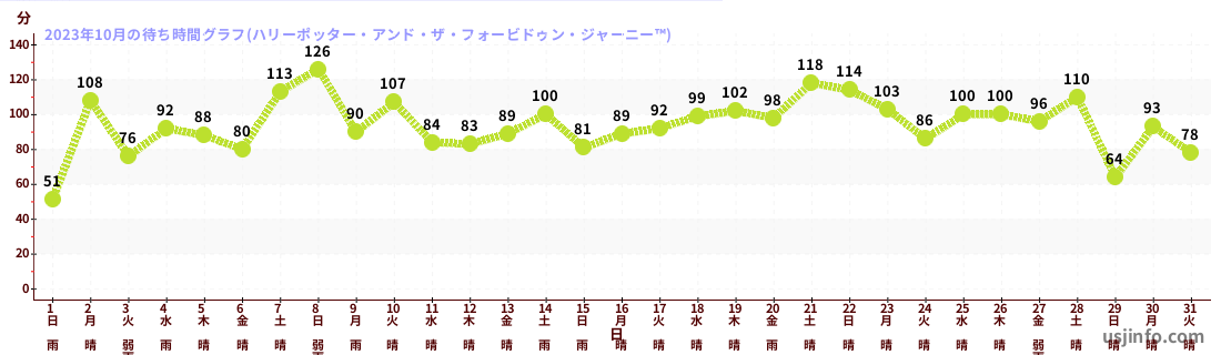 • ハリーポッター・アンド・ザ・フォービドゥン・ジャーニー™$B$N(B2023年10月01日のの一日平均待ち時間