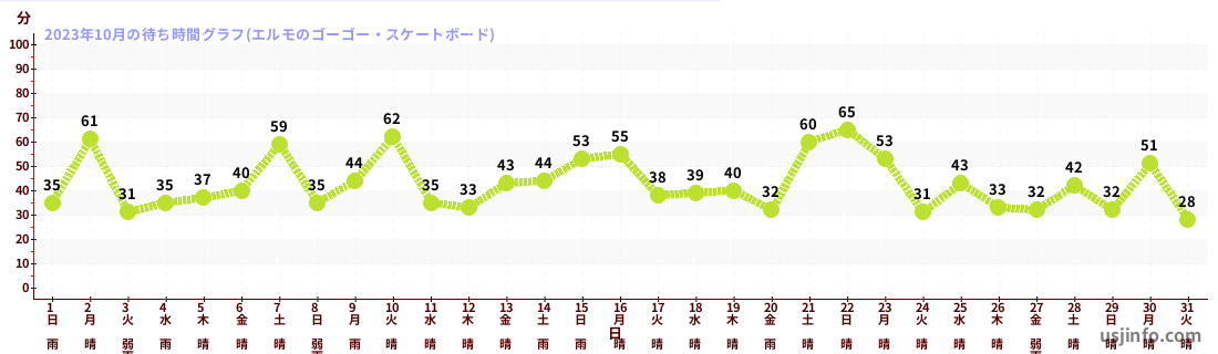 • エルモのゴーゴー・スケートボード$B$N(B2023年10月01日のの一日平均待ち時間