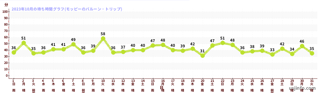 • モッピーのバルーン・トリップ$B$N(B2023年10月01日のの一日平均待ち時間
