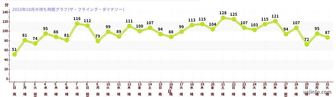 • ザ・フライング・ダイナソー$B$N(B2023年10月01日のの一日平均待ち時間