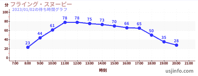 • フライング・スヌーピー$B$N(B2023年01月02日の待ち時間