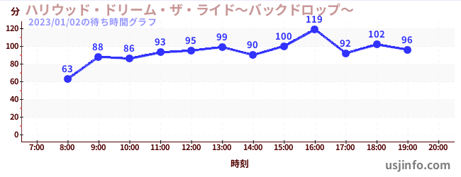 • ハリウッド・ドリーム・ザ・ライド〜バックドロップ〜$B$N(B2023年01月02日の待ち時間
