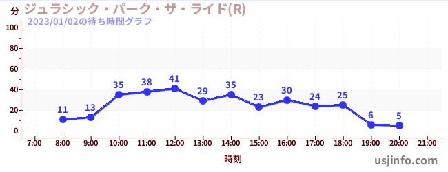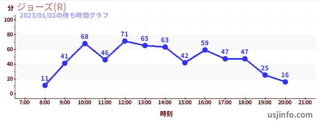 • ジョーズ(R)$B$N(B2023年01月02日の待ち時間