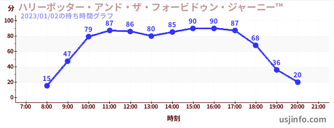 • ハリーポッター・アンド・ザ・フォービドゥン・ジャーニー™$B$N(B2023年01月02日の待ち時間