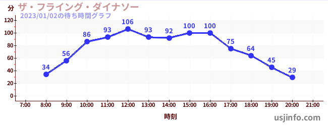 • ザ・フライング・ダイナソー$B$N(B2023年01月02日の待ち時間