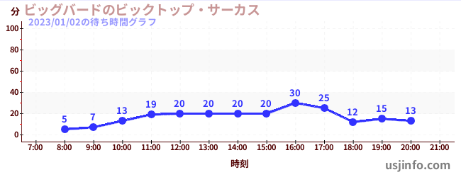 • ビッグバードのビックトップ・サーカス$B$N(B2023年01月02日の待ち時間