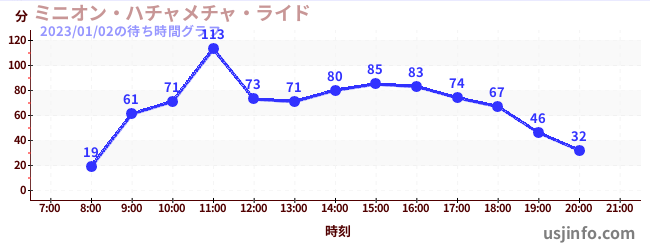 • ミニオン・ハチャメチャ・ライド$B$N(B2023年01月02日の待ち時間