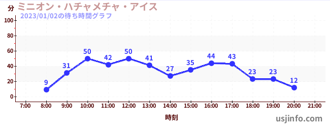 • ミニオン・ハチャメチャ・アイス$B$N(B2023年01月02日の待ち時間