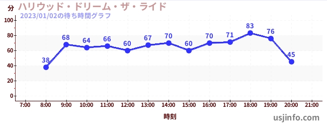 • ハリウッド・ドリーム・ザ・ライド$B$N(B2023年01月02日の待ち時間