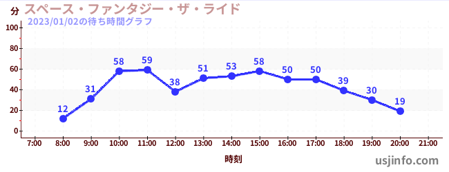 • スペース・ファンタジー・ザ・ライド$B$N(B2023年01月02日の待ち時間