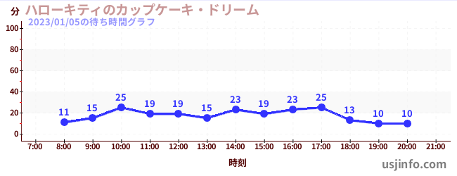 • ハローキティのカップケーキ・ドリーム$B$N(B2023年01月05日の待ち時間