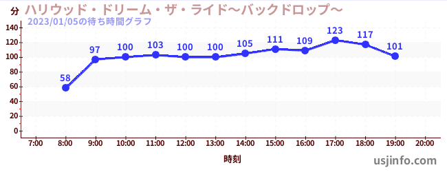 • ハリウッド・ドリーム・ザ・ライド〜バックドロップ〜$B$N(B2023年01月05日の待ち時間