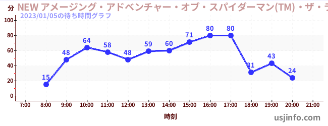 • NEW アメージング・アドベンチャー・オブ・スパイダーマン(TM)・ザ・ライド 4K3D$B$N(B2023年01月05日の待ち時間